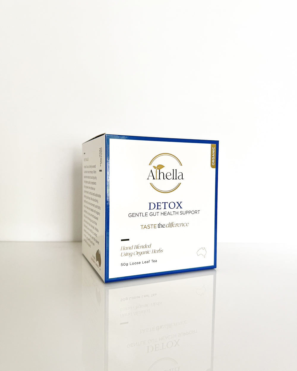 The Athella Detox tea is a purifying tisane blend that encourages the body to cleanse the digestive tract, reduce bloating & help to improve digestion. Detox is a gentle cleanse that helps to decrease cravings to support fat burn and maintain healthy body goals. Plus, with a sweet aftertaste, it can help quieten those sweet cravings.