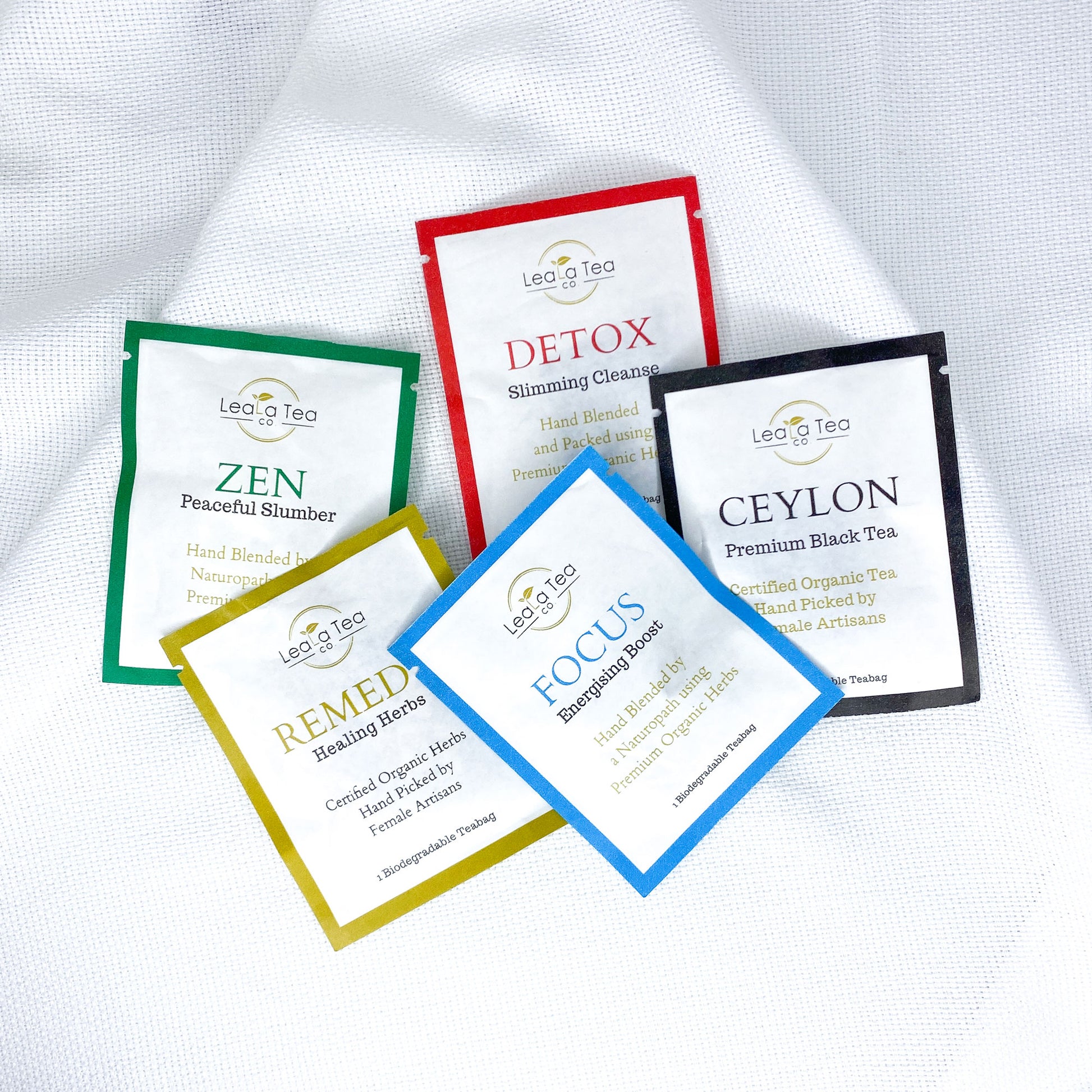 Inside the Athella Wellness Blends Tea Tasting, you'll find 14 individually packaged organic wellness blend biodegradable teabags.